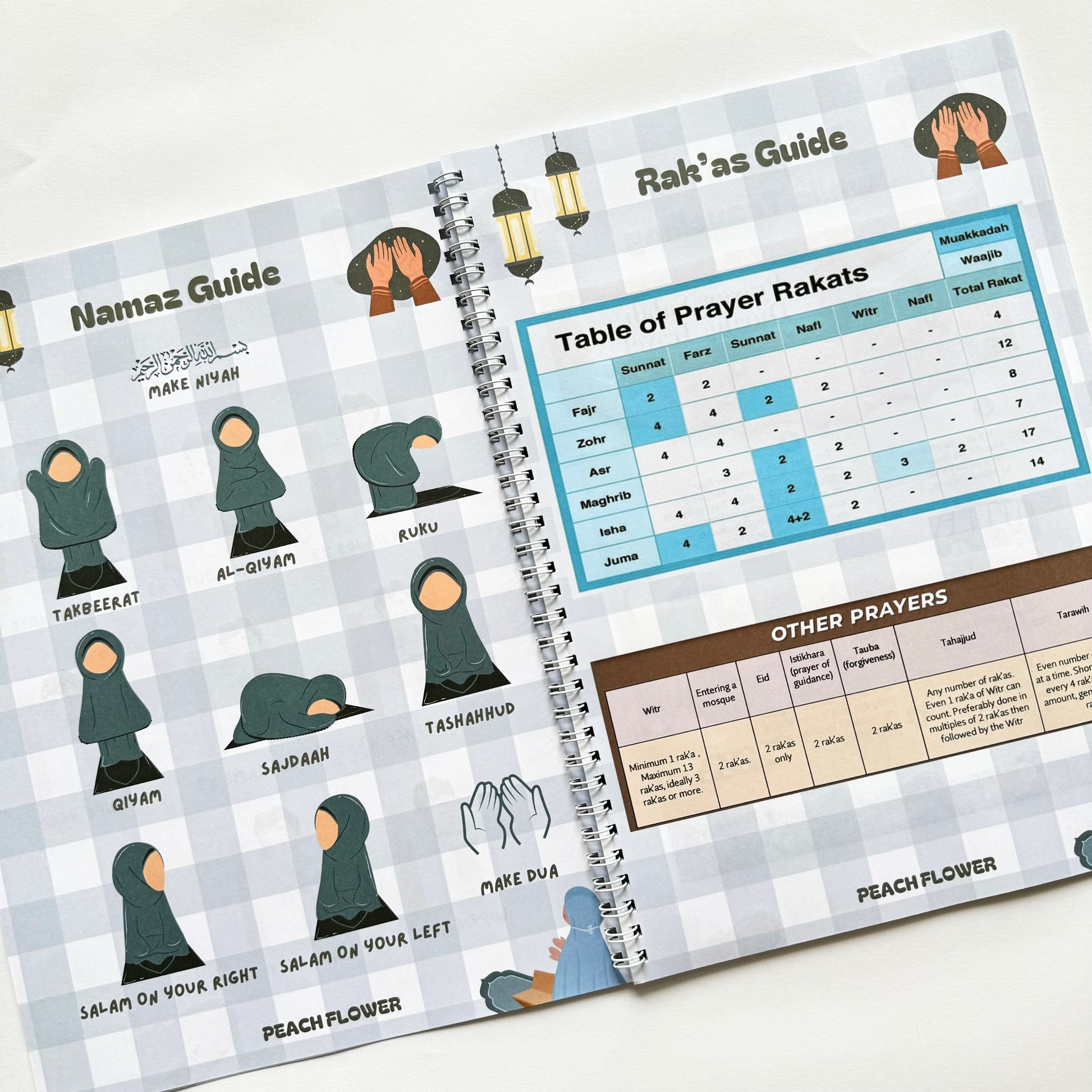 This Namaz planner includes the following pages: